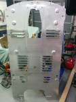 - Next I removed the 4 large head screws holding a center air inlet duct. This step could probably have been omitted since the inlet was fully part of the tray, but I think it made access a little easier. I think this inlet might be on early cars only, I’ve seen pictures of other car under trays that don’t have the same inlet. I think this funnels air across the Oil pan/sump to help with cooling (referenced in the Aston Martin official parts manual as Sump NACA duct).
