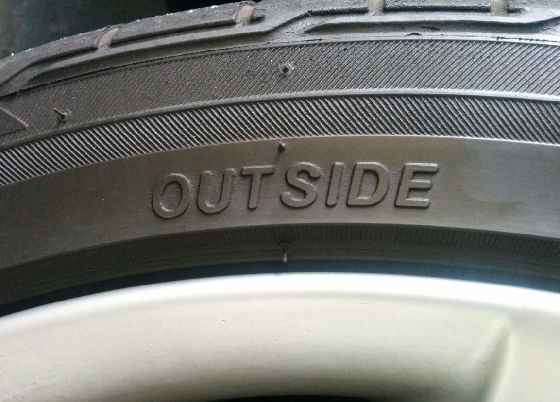 Verify the tires are mounted correctly on the rims, with the Outside indicator on the outside of the rim.