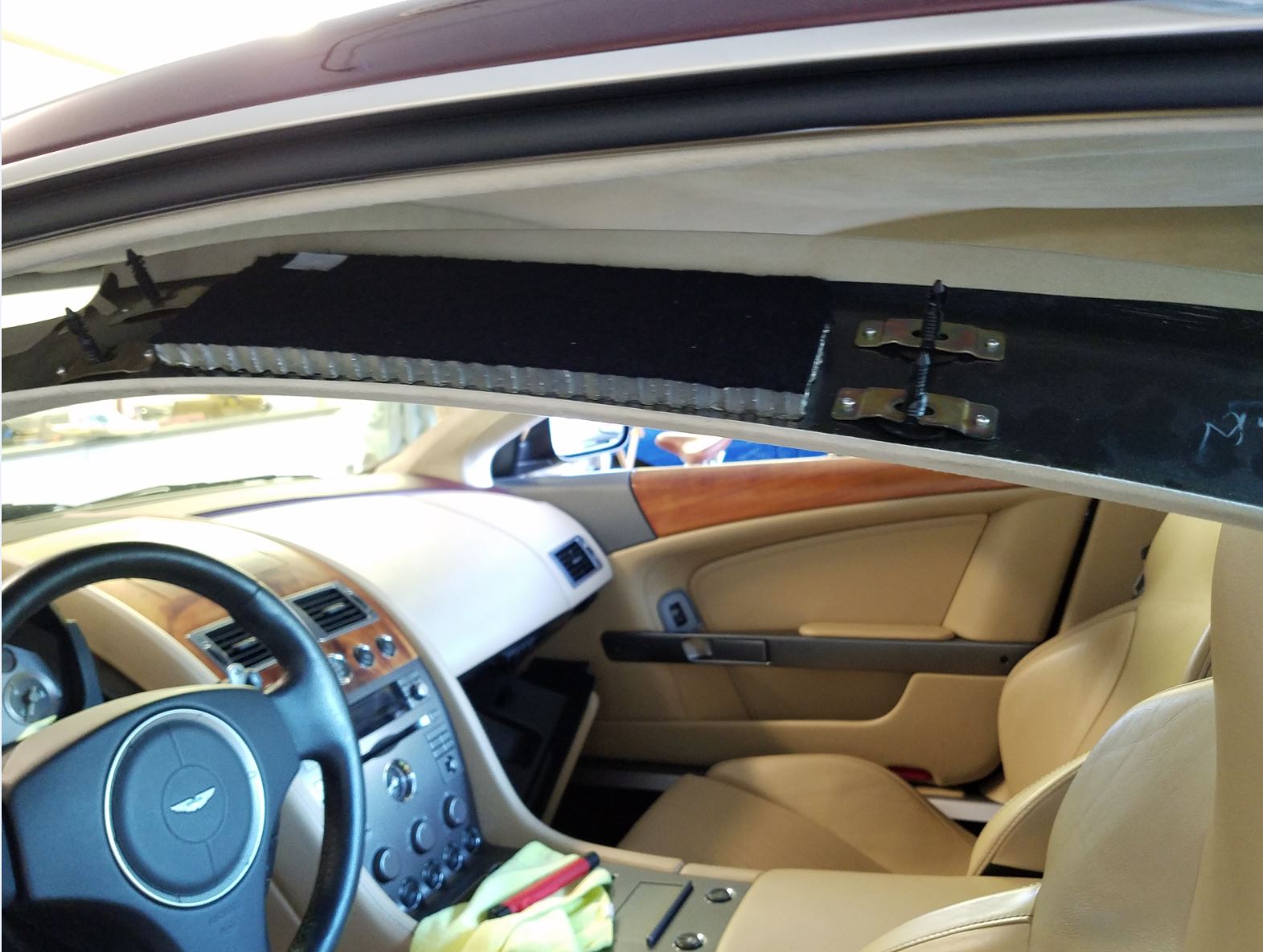 Arrrgggh! You may be wondering – “Hey, where are those articles on changing the Coil packs?” Well, I’ve been distracted by a new issue – the headliner in my DB9 let go and is sagging on my head. Not something you can really ignore, each time you get in to drive it sits like a cap on your head. Only got 10 days of driving bliss (after the Coil Packs change). Frustrating. In its defense, it was 103°F outside the day it went, and heat certainly speeds the deterioration of the glue.