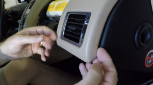 - Unlike the drivers side vent panel that just pulls off, the passenger side panel has two screws that must be removed first.