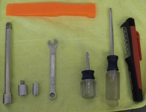 As you will see in the video, I use the Interior Panel Pry Bar Tool in a non-standard way. You could probably use any similar sized rectangular handled tool you have around, but if you’d like to get the same tool its just $10 for a set from Pepboys.