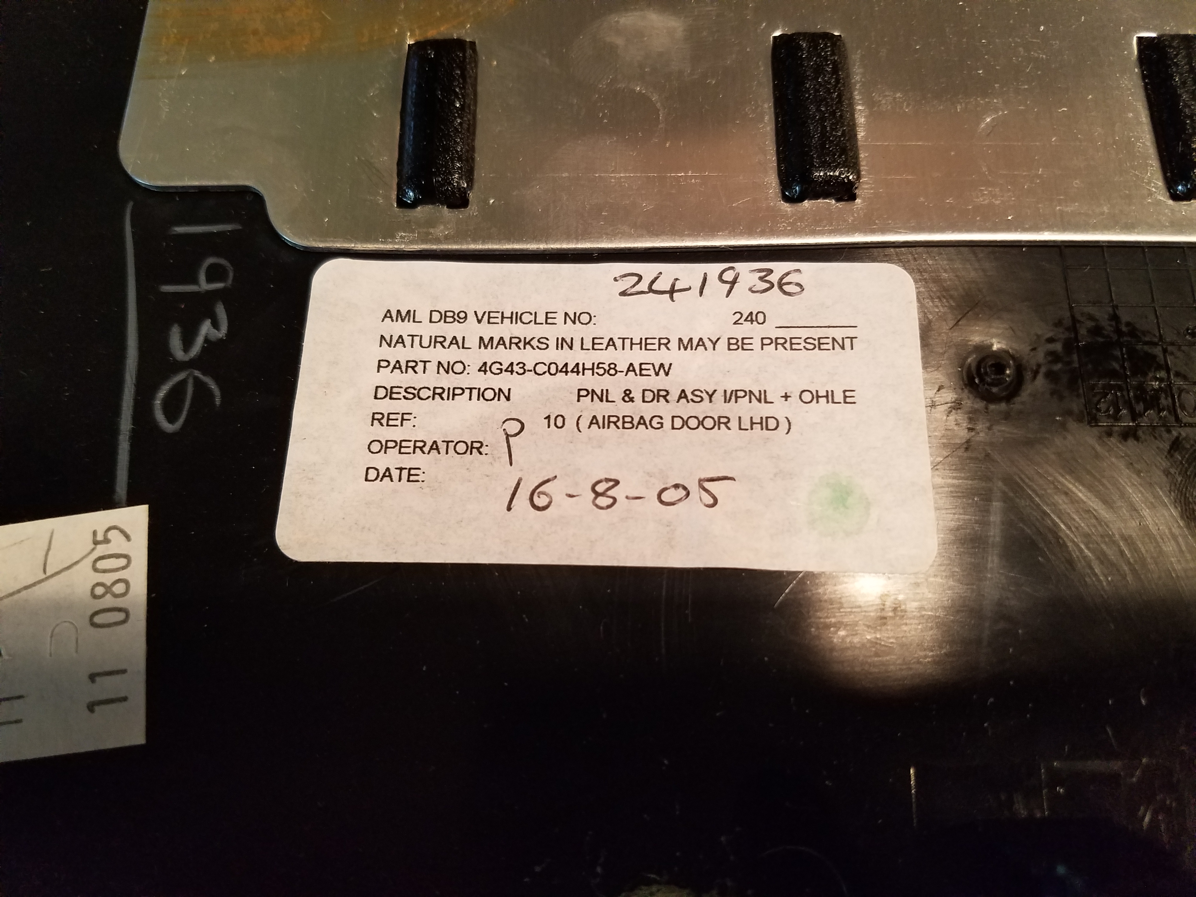 Aston Martin DB9 LHD Instrument Panel Passenger Side Airbag Door View 13 On February 24, 2018 By Steve McEvoy Share this: Click to share on Facebook (Opens in new window) Facebook Click to email a link to a friend (Opens in new window) Email Click to print (Opens in new window) Print Like Loading...