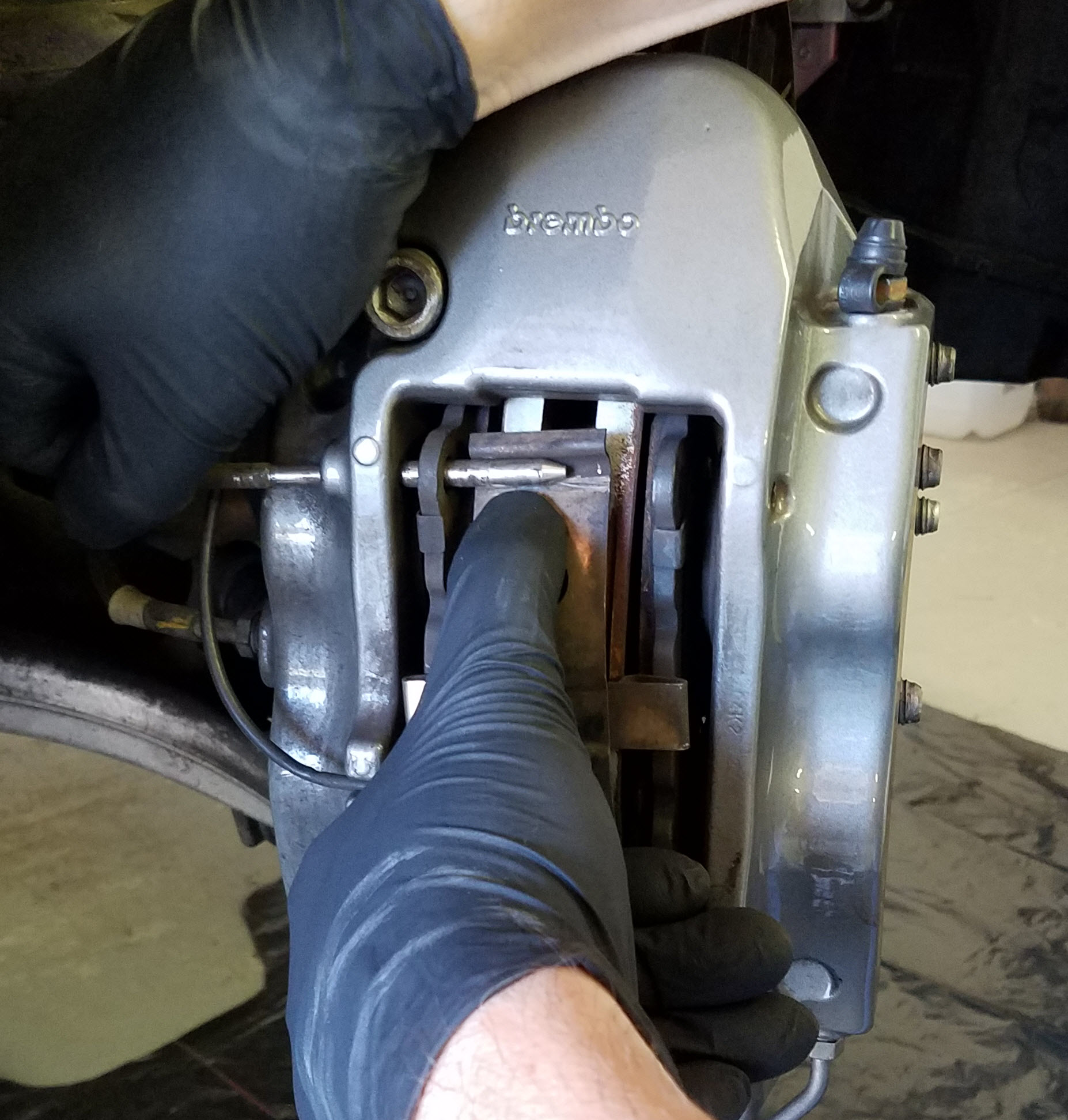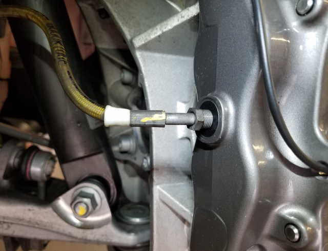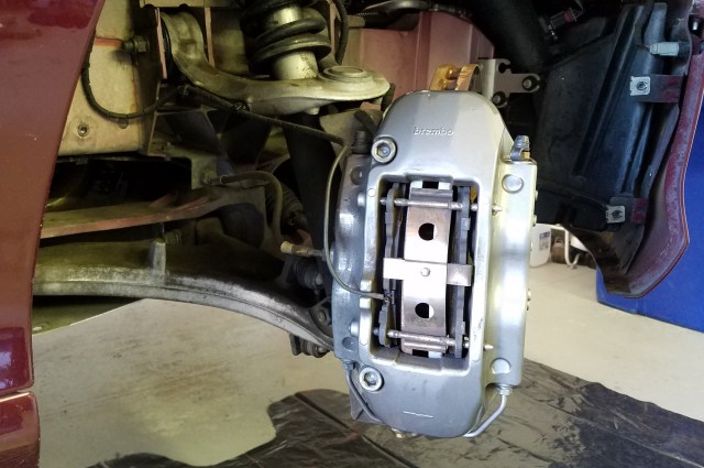 Steering turned full left to get better access to the right Caliper.
