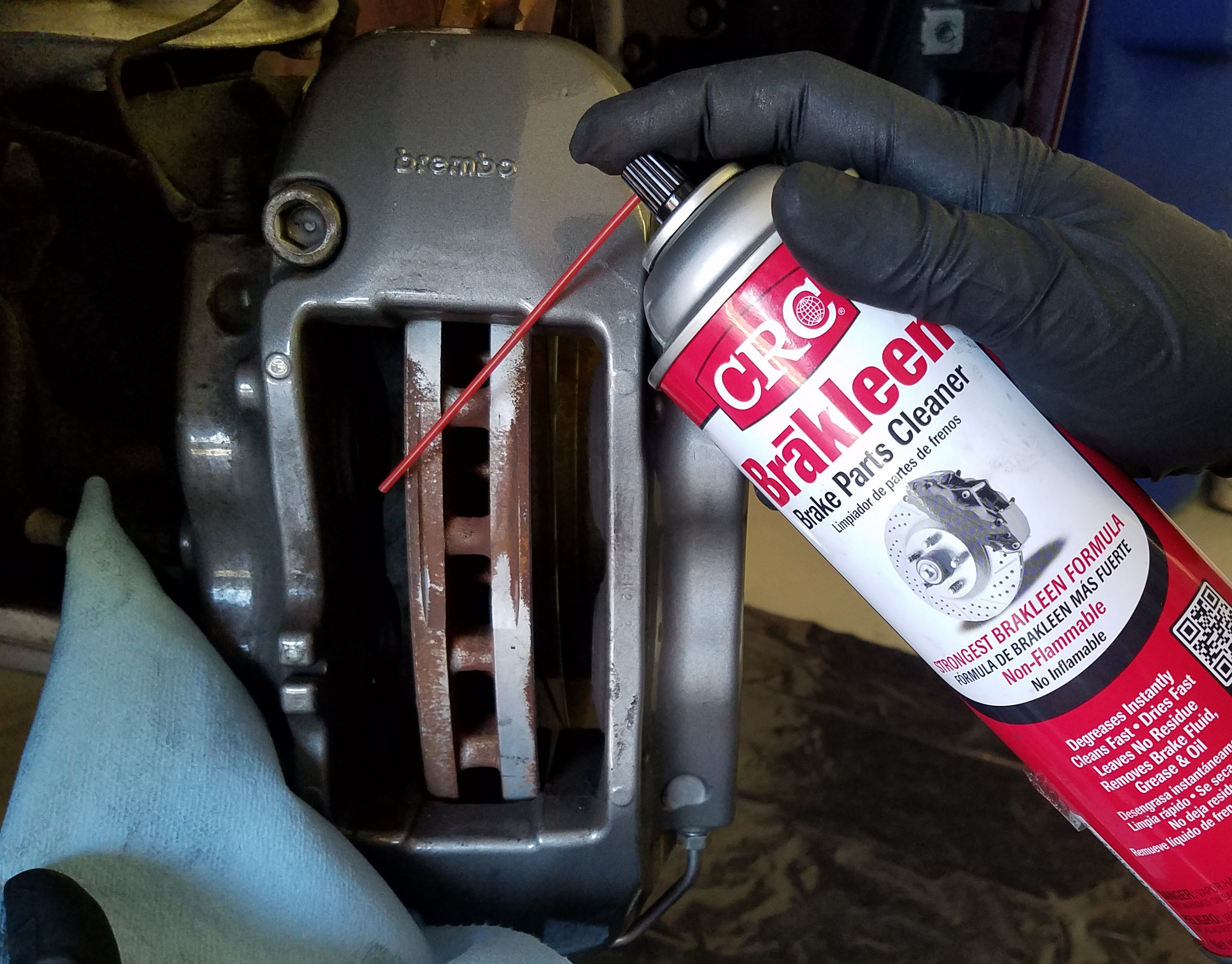 • I purchased a large can (19 oz) of CRC Brakleen (p/n 05089).   You can buy one for about $5 USD on Amazon.com or from your local auto parts store.