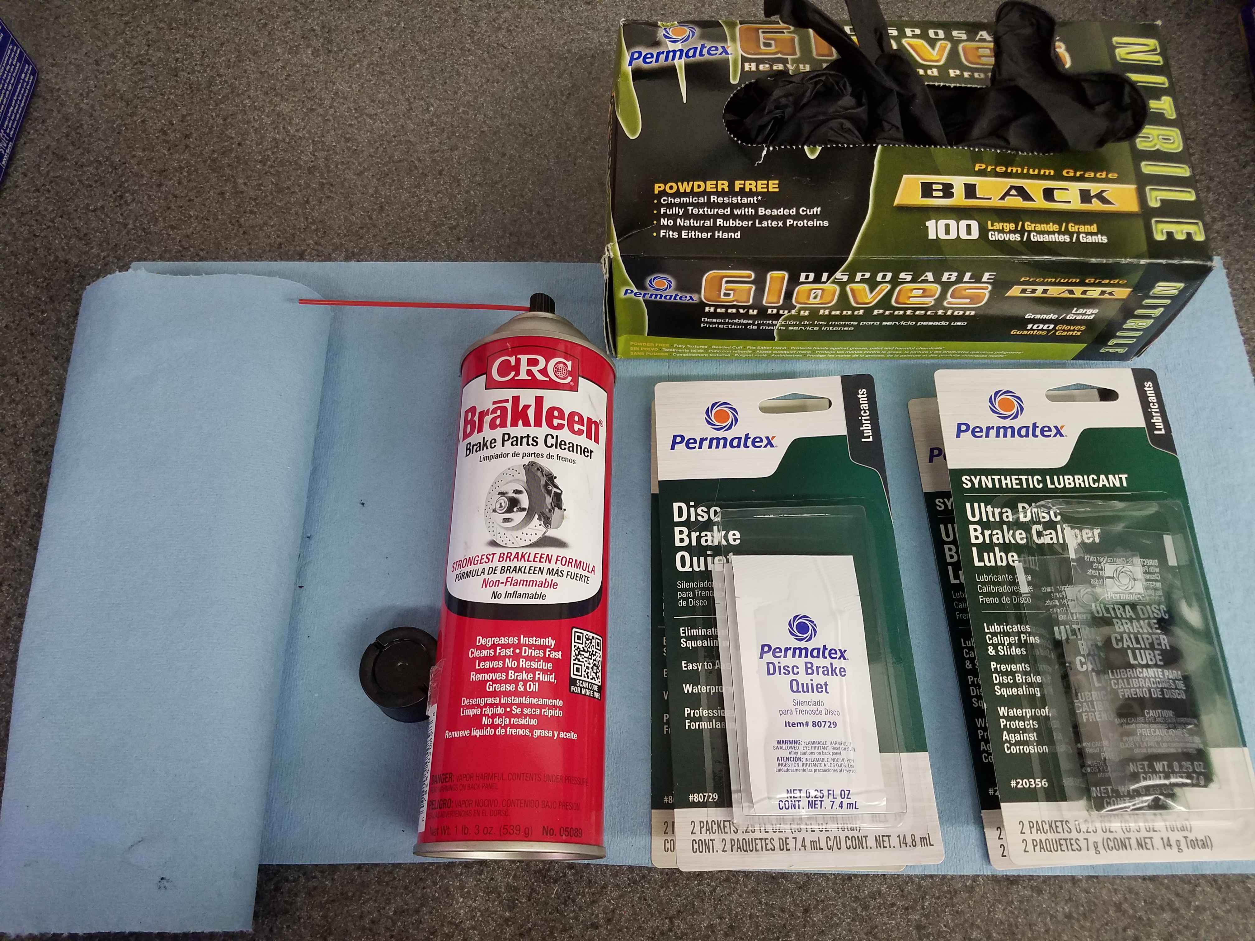 In addition to the tools, changing the brake pads is a dirty job and you might want to have some of these supplies on hand (I consider these standard shop supplies):