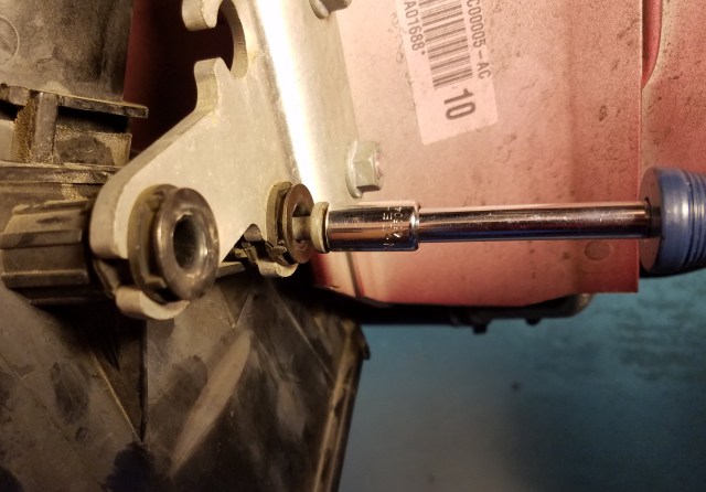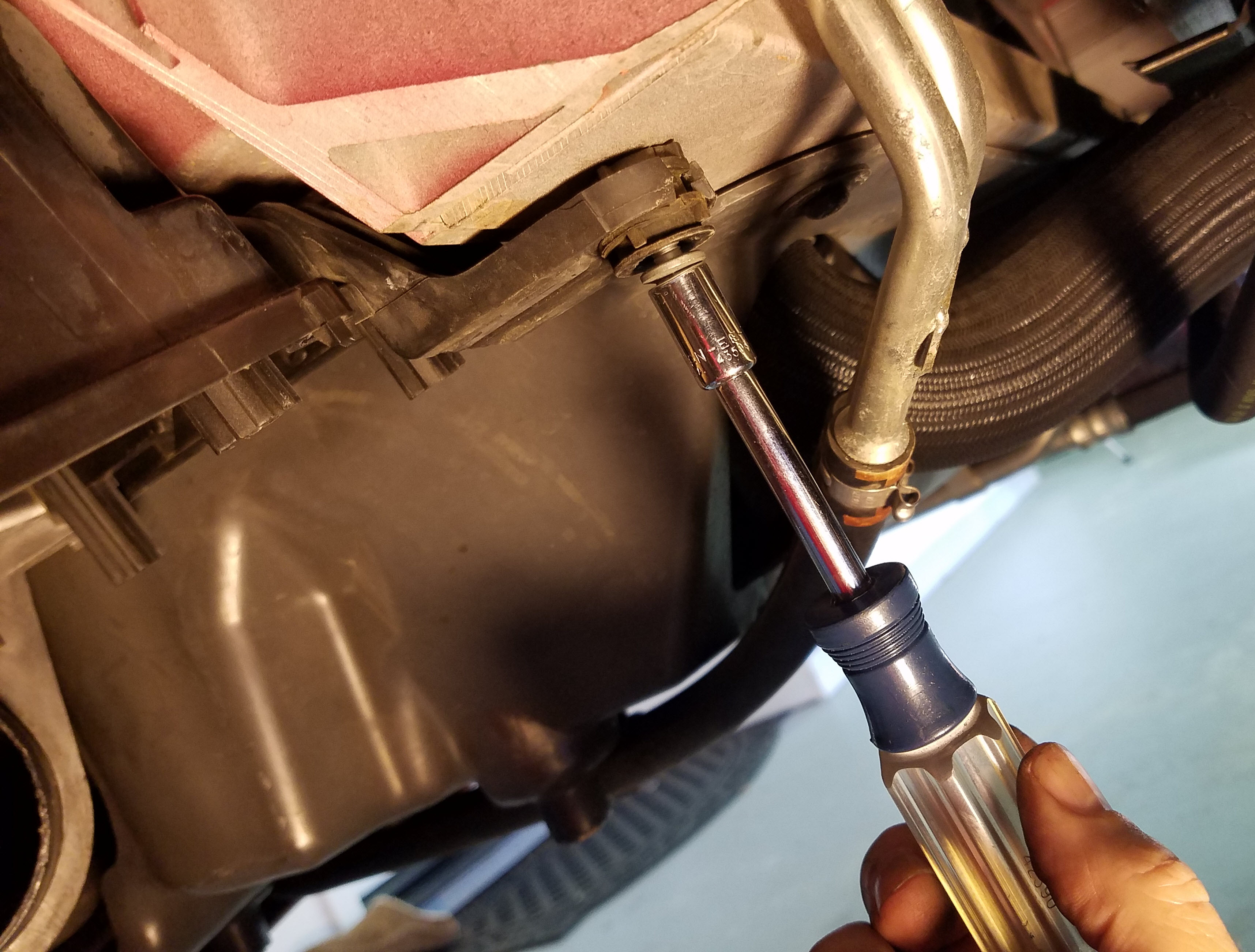 - Using your 8mm socket loosely install the two 8mm bolts for the rearward bracket.