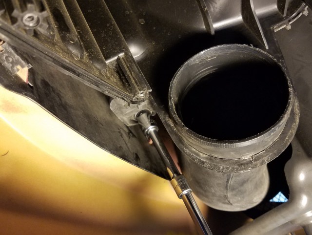 - Lift the airbox back up into place, and finagle it carefully into the space.