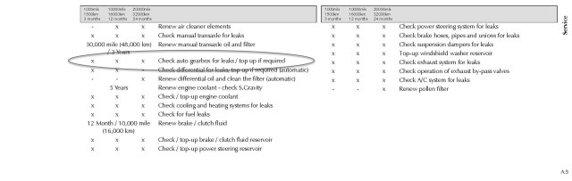 I started my research where we all should – the owners manual to review the service schedule. There is only one item to inspect for leaks and top up the fluid if needed. No interval for changing fluid or filter.