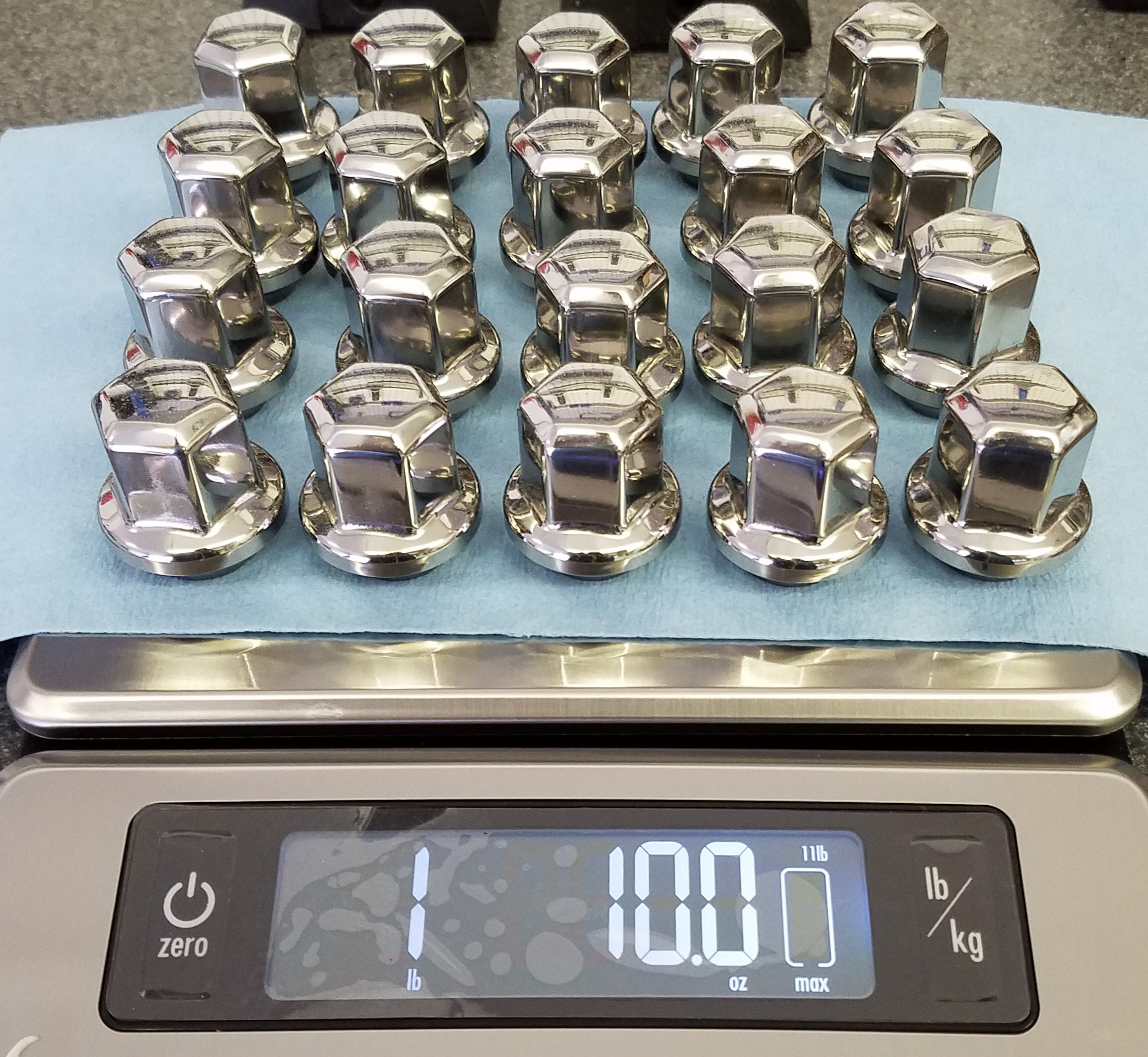 While I had two full sets of wheels (old and new), I wanted to weigh the difference between the Original and Sport Pack lug nuts and rims.   The assumption would be that the ‘Sport’ versions should be lighter right, but by how much?  Read on to get the answer.