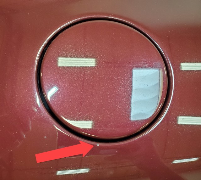 The one area where you might self-inflict a wound.  Putting the fuel filler nozzle in and out of the area has a risk of clunking against the paint work and nicking it since it’s so brittle.   Sure enough it has happened to may car.