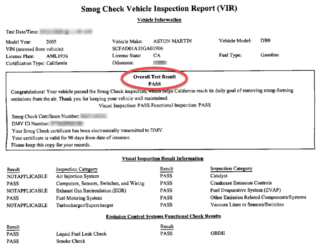 Like all Californian’s I’ve had my DB9 SMOG checked every two years since I’ve owned it, and its passed every time. I keep it in good running order, so I am not surprised.