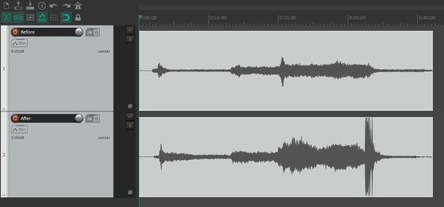 I enlisted my trusty neighbor, friend and cameraman Rob who’s also a bassist in a band and their defacto sound engineer to help me out. He brought in some of his recording equipment to try and accurately record the sound before and after the change.