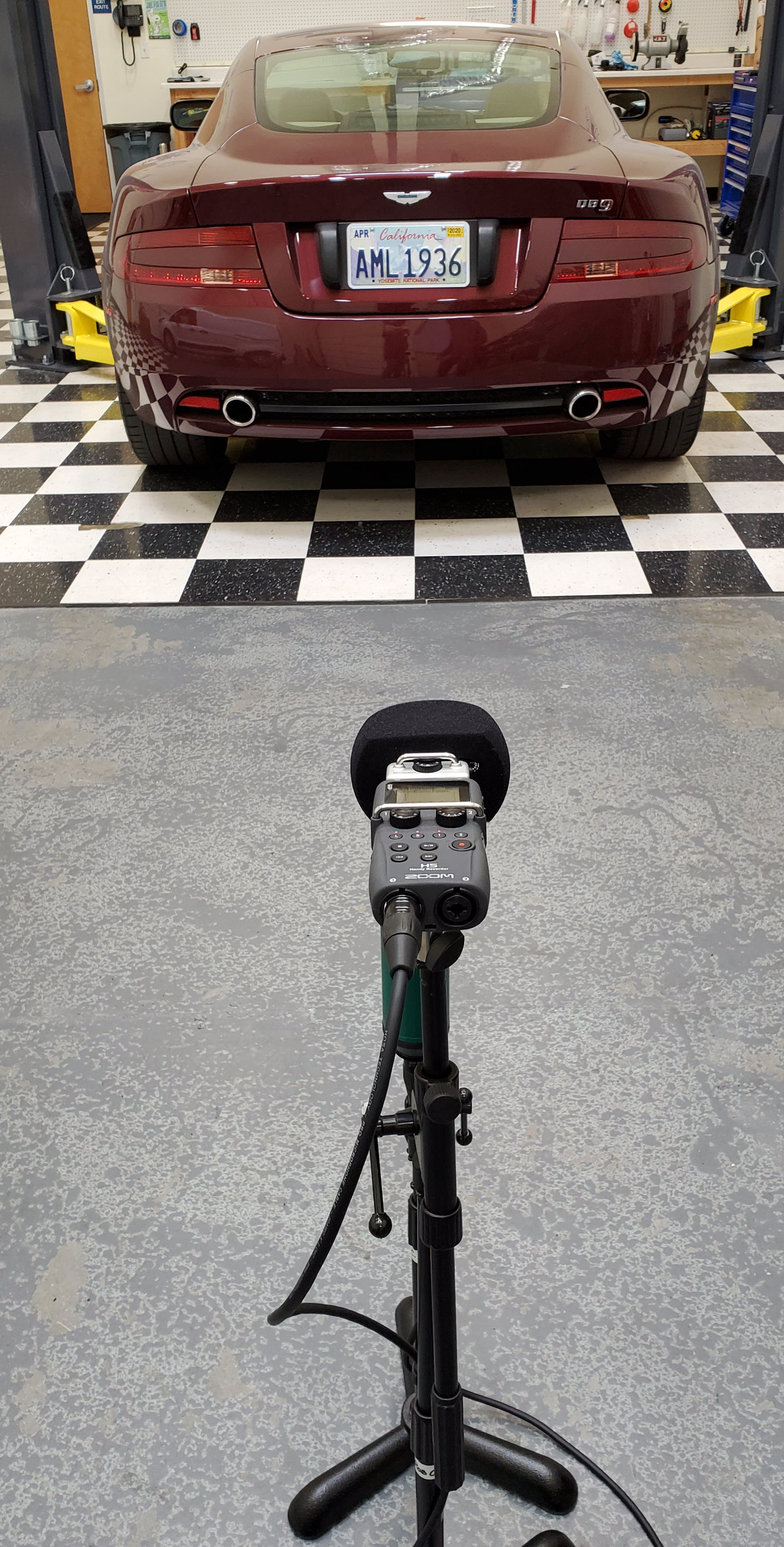 We setup his microphones along the center-line of the car, nine (9) feet behind the rear bumper. The stereo mics were mounted to a stand. We left everything setup before and after the SCDK install so the test parameters were identical.