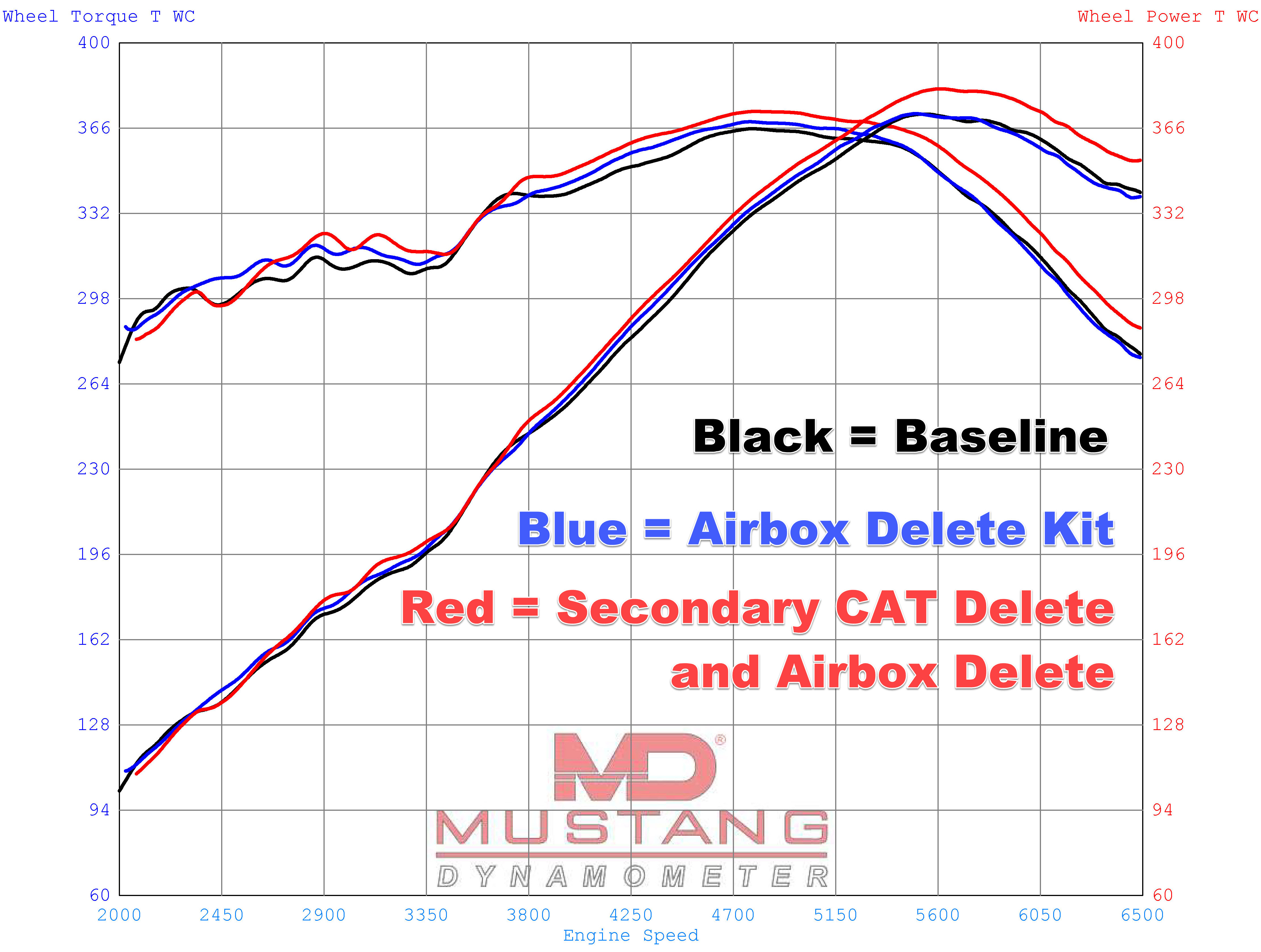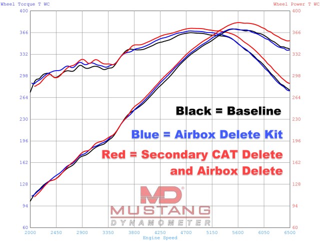 • Up 5 bhp over airbox delete kit only (2.6%)