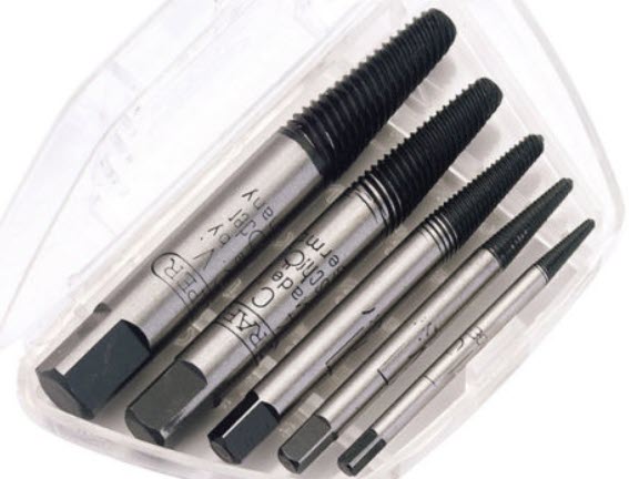 There are two options to repair a sheared bolt. If possible it may be extracted by drilling a hole down through the centre of the bolt and using a stud extractor. These extractors are readily available but I have to say I haven’t had much success with them. The extractors have a left hand thread so as they are screwed into a drilled hole in the sheared bolt or stud they tighten in the direction that will unscrew the sheared bolt.