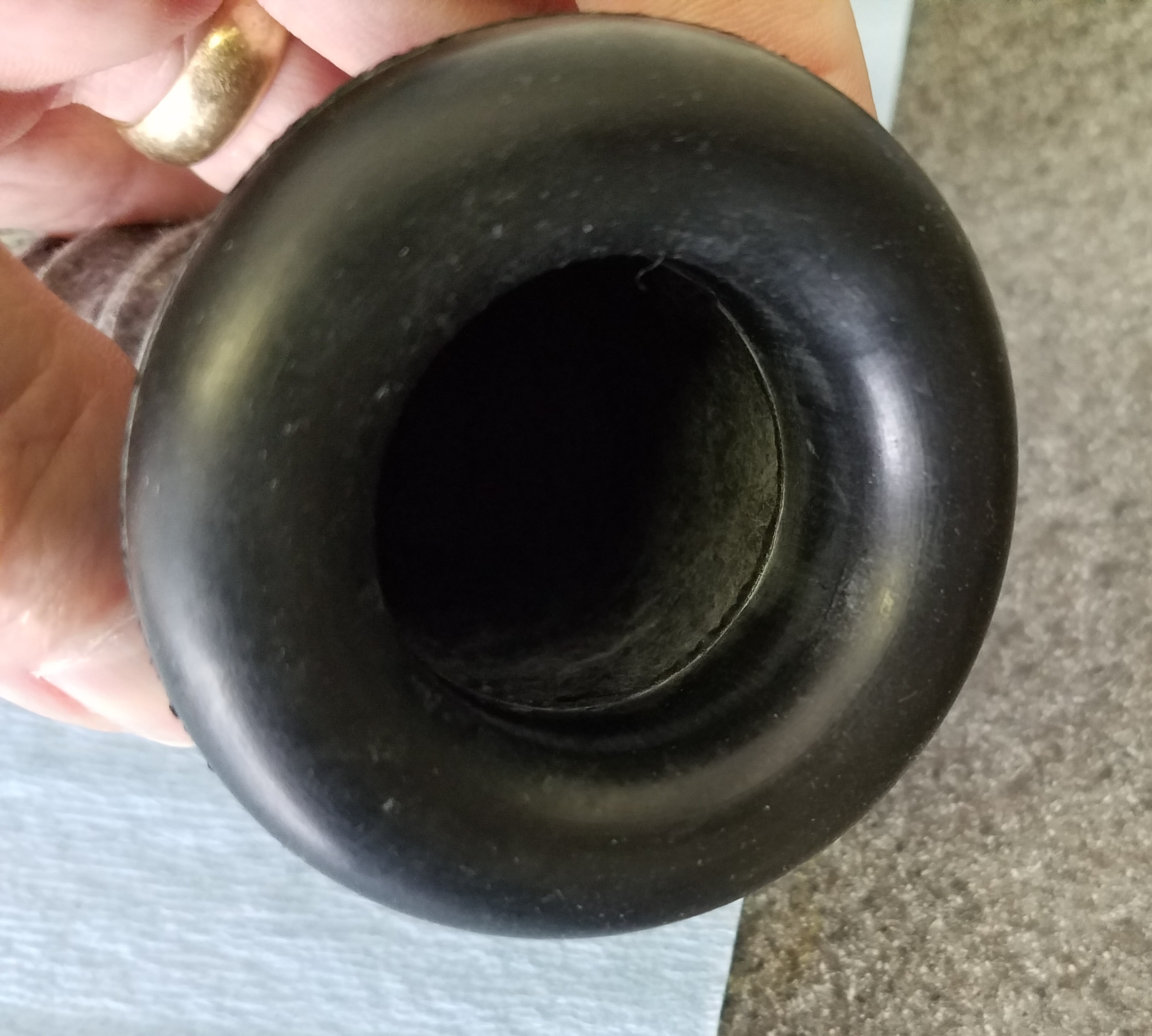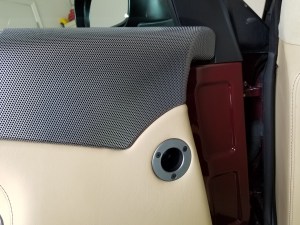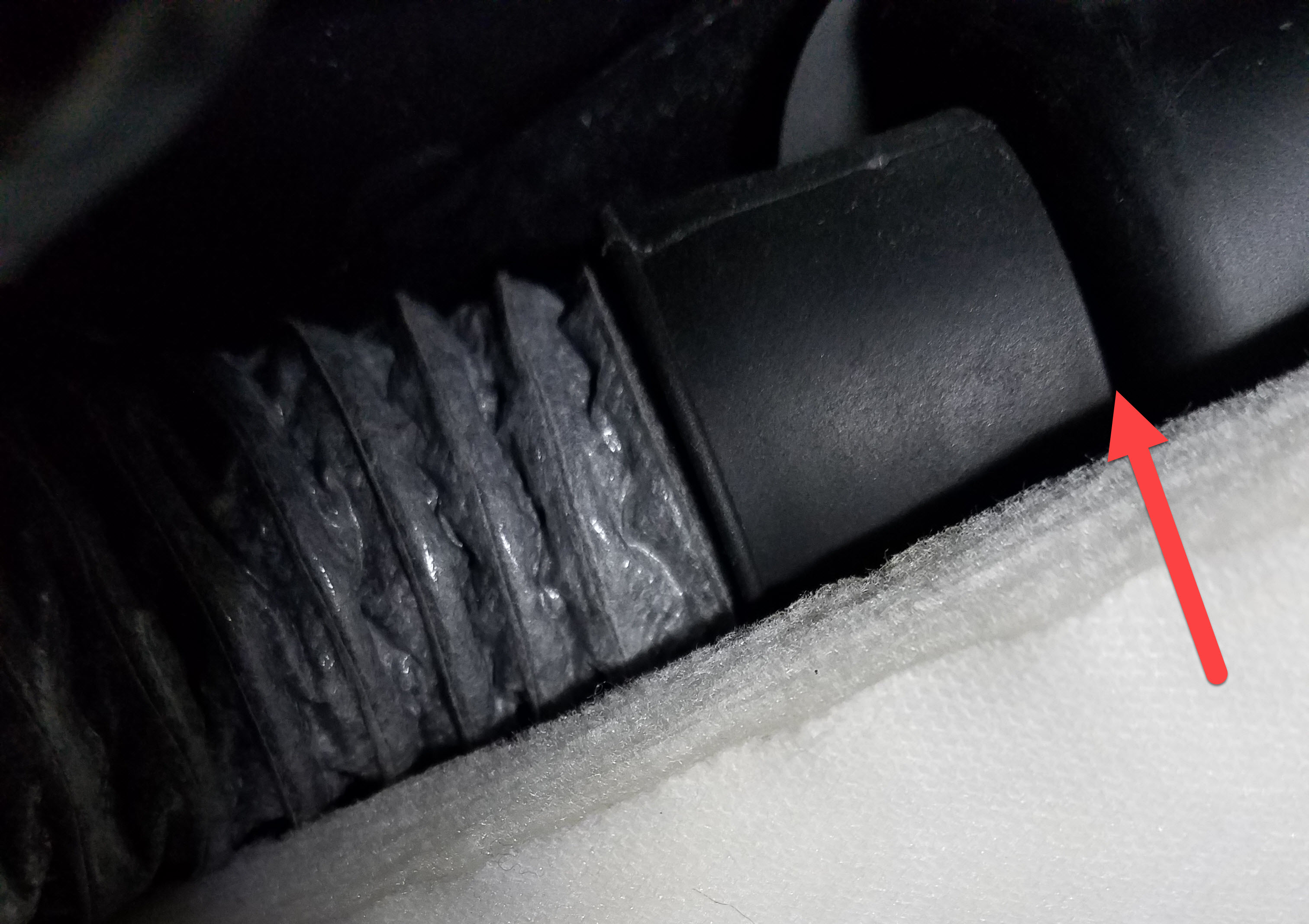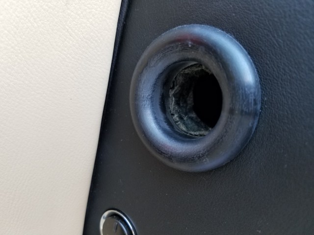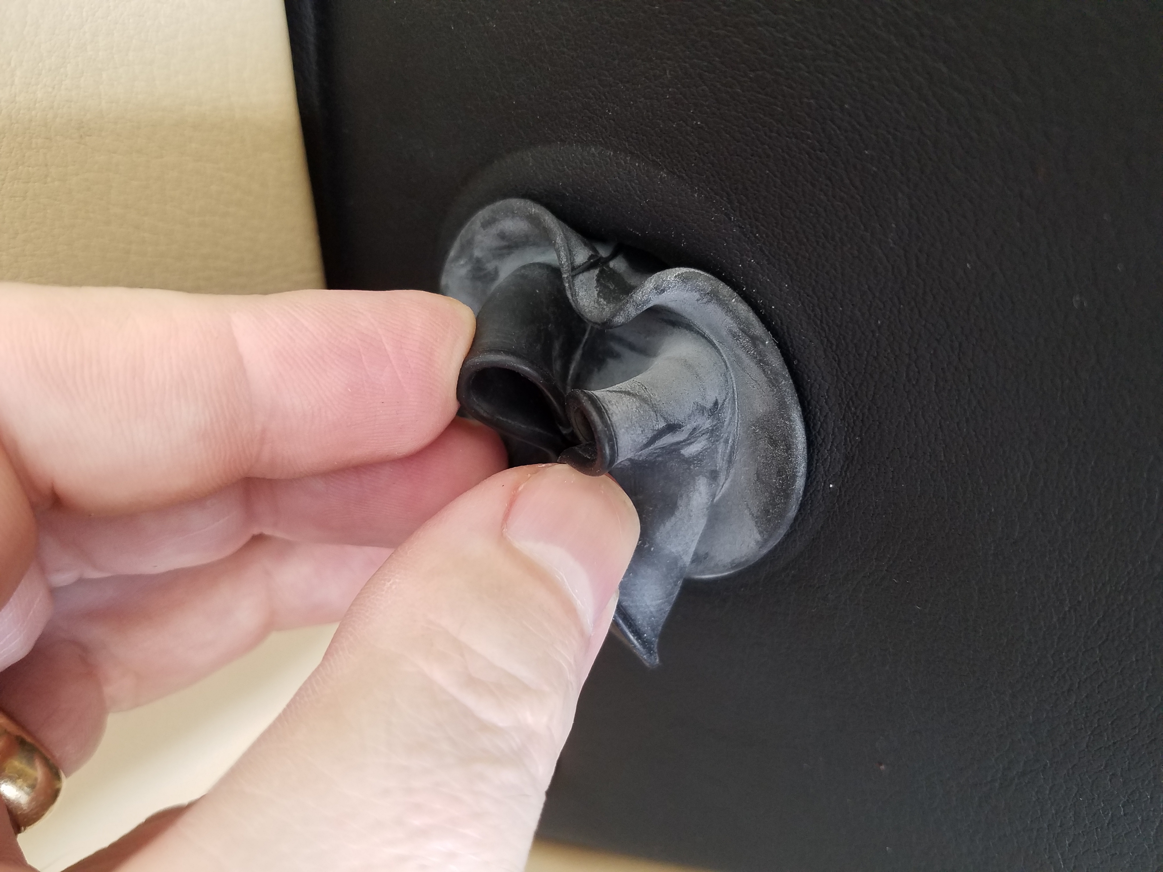 • On the side of the dash, tuck the circular rubber ‘lip’ inward towards the center of the tube, and push it into the dash.  Just use your fingers and mind the leather.   This is very easy to do.