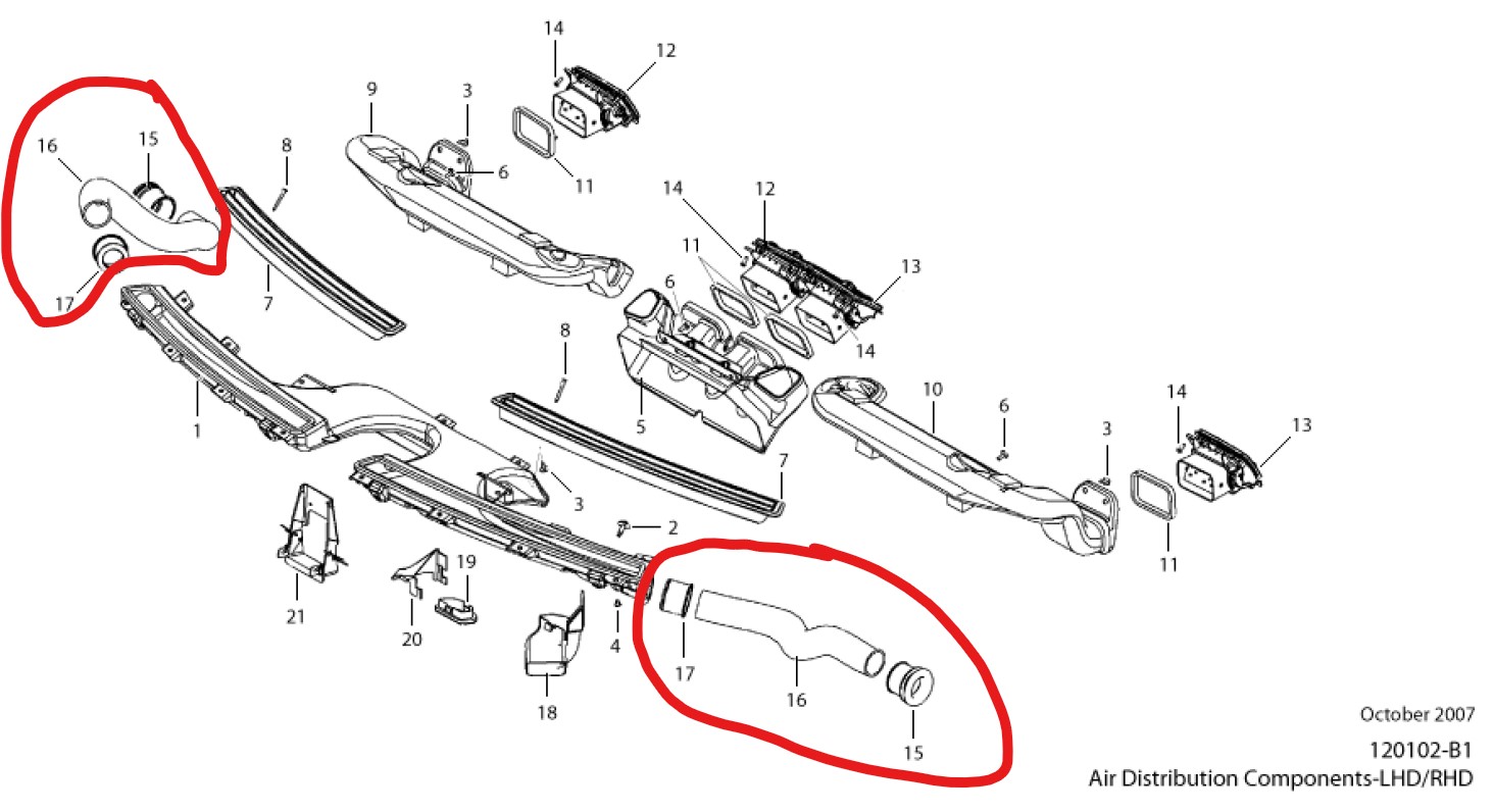 Heat destroys cars.   I live in the central valley of California, and where the summertime average temp is 92°F or more.   The sun & heat attacks the paint, the plastics, the wood, the leather and in particular kills the adhesives used to glue the parts together.   One day when I was washing my baby I opened the drivers door only to see what looked like her intestines hanging down in the foot well.  Ugh.  Upon closer inspection I found this was the remnants of Air Conditioning side window demister hose.   The spiral wound hose had completely delaminated and was now dangling like an old slinky from under the dash.   Fortunately it wasn’t very expensive to repair, and you can easily tackle it yourself.  Let me share a few tips on how.