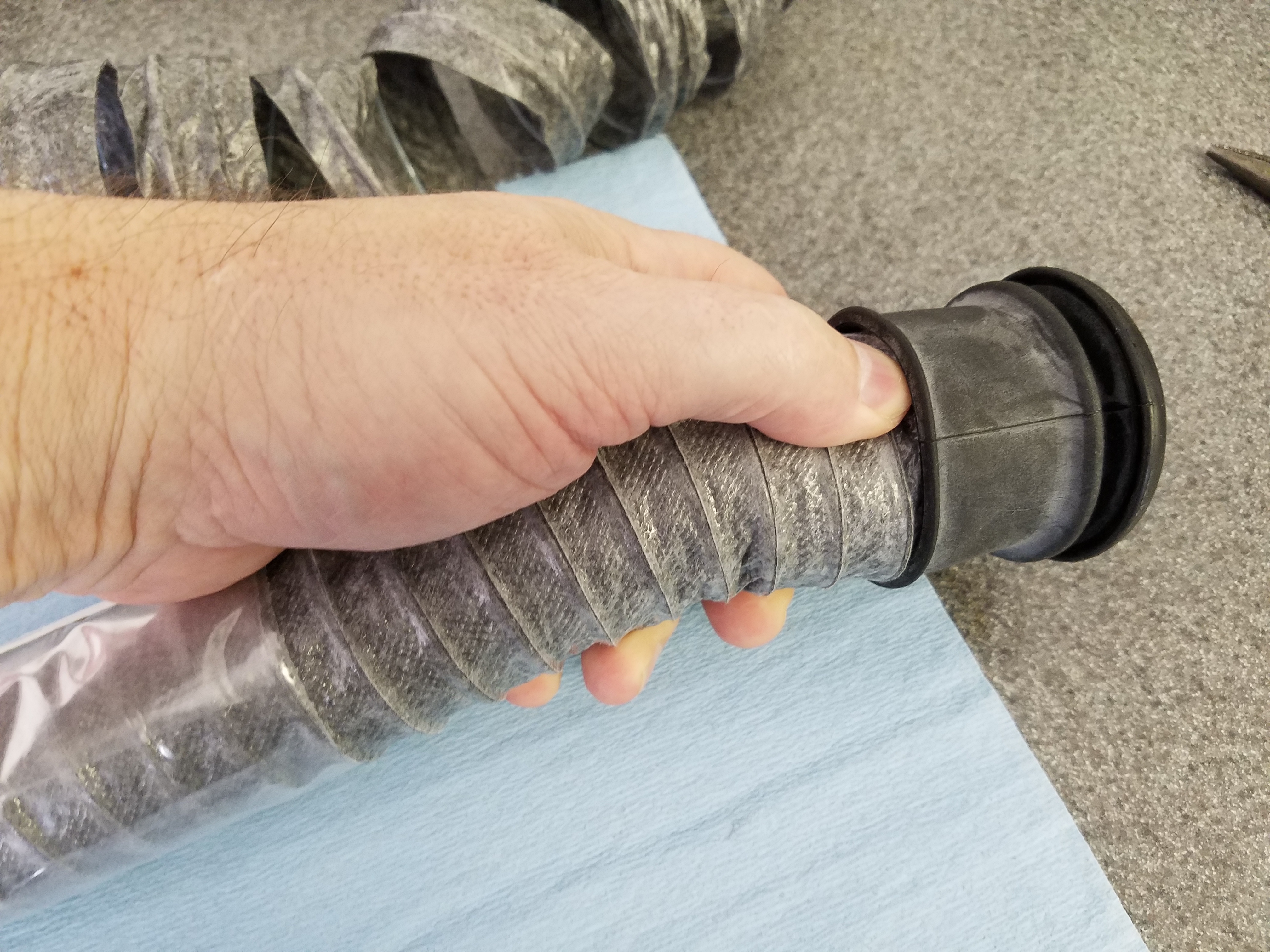 • Pre-Scrunch the hose.  The hose when it arrived was actually quite rigid.  It needs to be supple so you can bend it around under the dash.  Just compress it all the way and it almost instantly became nice and compliant.