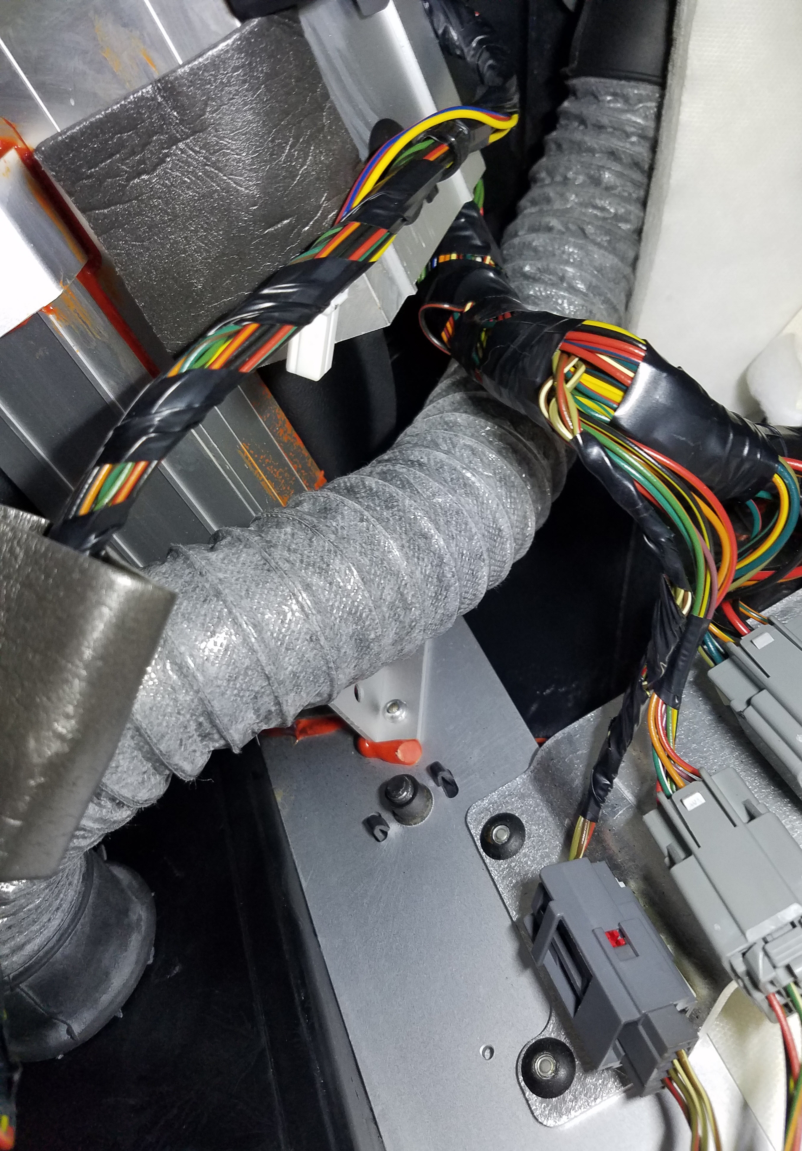 • Route the remaining hanging hose behind the wiring harness and make a J loop towards the opening in the side of the dash.