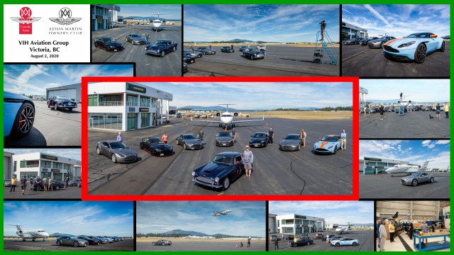 The Canada West Aston Martin Owners Club (AMOC) held a photo session of 8 Aston Martins and a Challenger 604 Corporate Jet on August 2, 2020. It was at the VIH Aviation Group’s tarmac located at the Victoria International Airport. The jet recently returned from a 4 month refurbishment/maintenance in Florida.