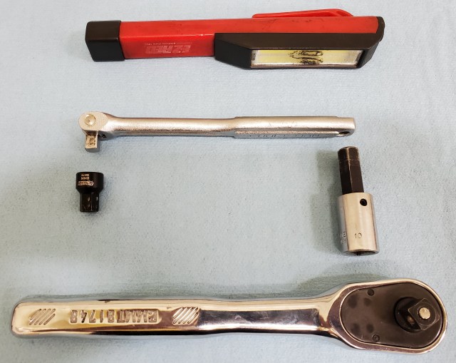 Space is very tight to get the wrench in, so it needs to be a short stubby wrench- Or you can use the stubby 8mm hex socket on a 1/4″ L handle like I do in the video