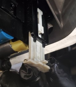- Push the white Lock Lever on the Mechatronics Unit straight up (it should move easily now) until it locks into place and clicks.