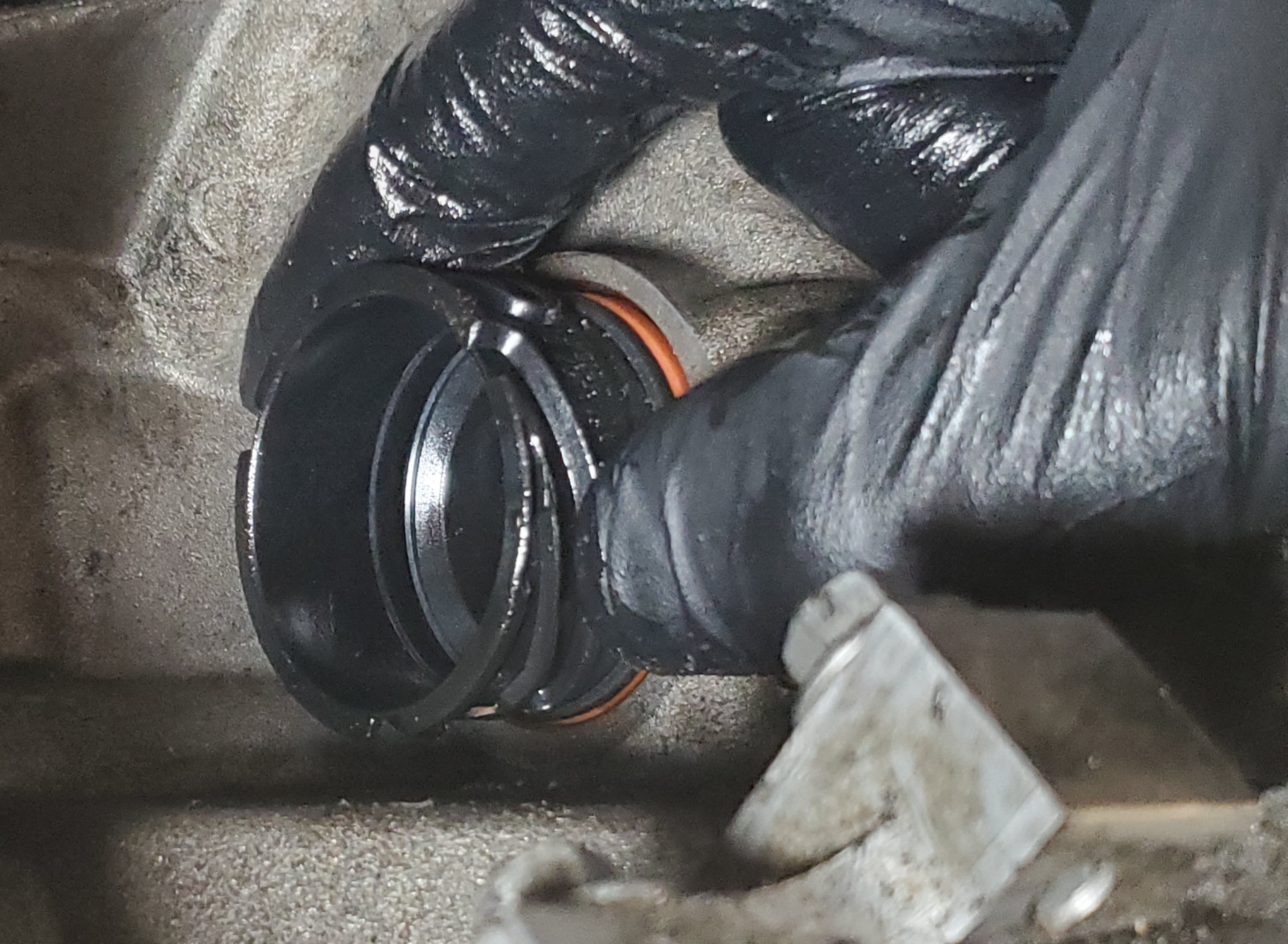 - Use some transmission fluid and lubricate the O-rings on the new Electronics Sleeve. This will help it slip in.