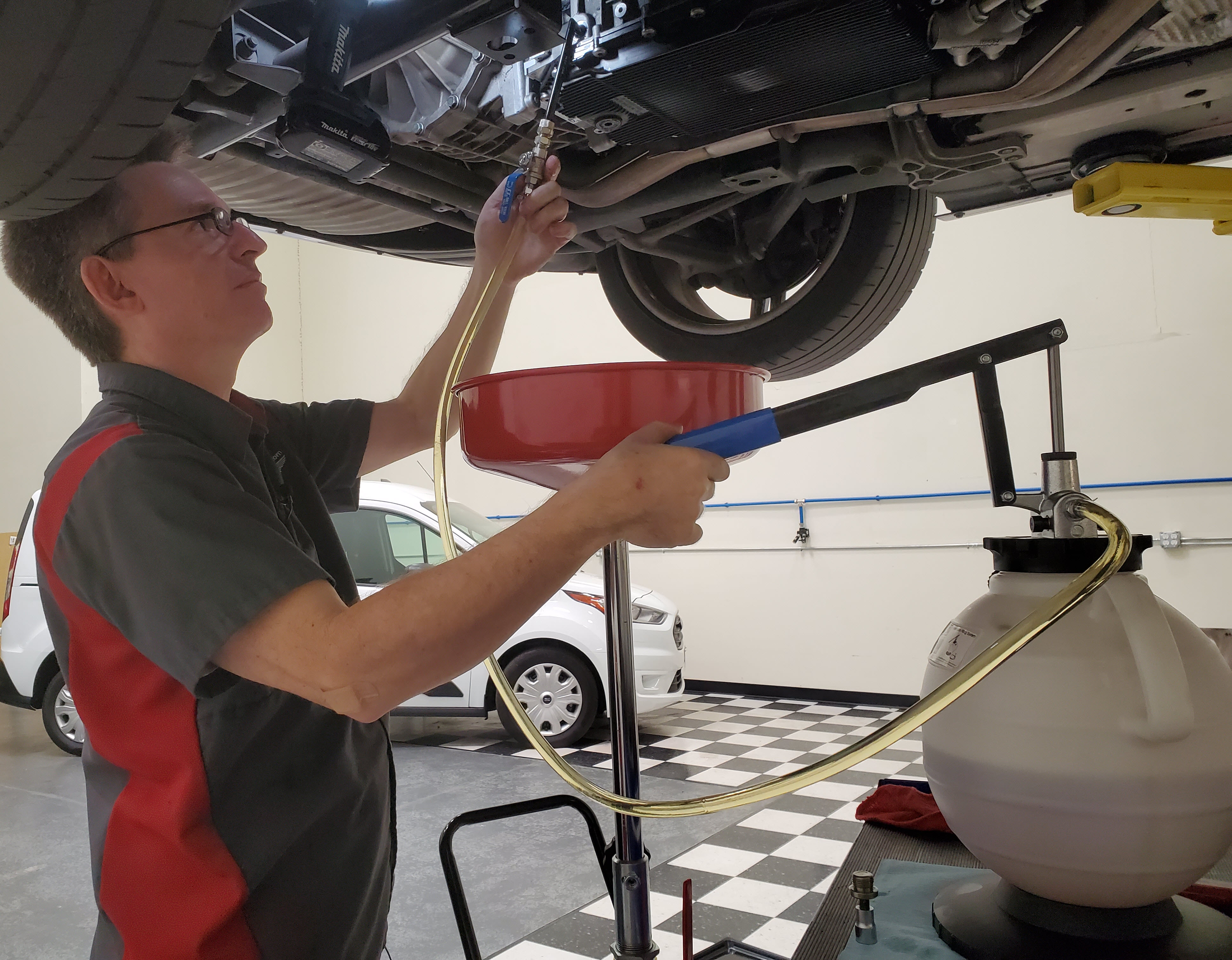 • If you are just checking the fluid and haven’t done a full drain and service, it would just fine to use the $10 hand pump screwed onto the bottle top.  No need for a big pump if you are just topping off a small amount.