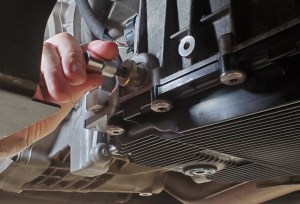 • Once the temperature reaches 30°C (86°F) remove the transmission fill plug again using the 8mm stubby hex.