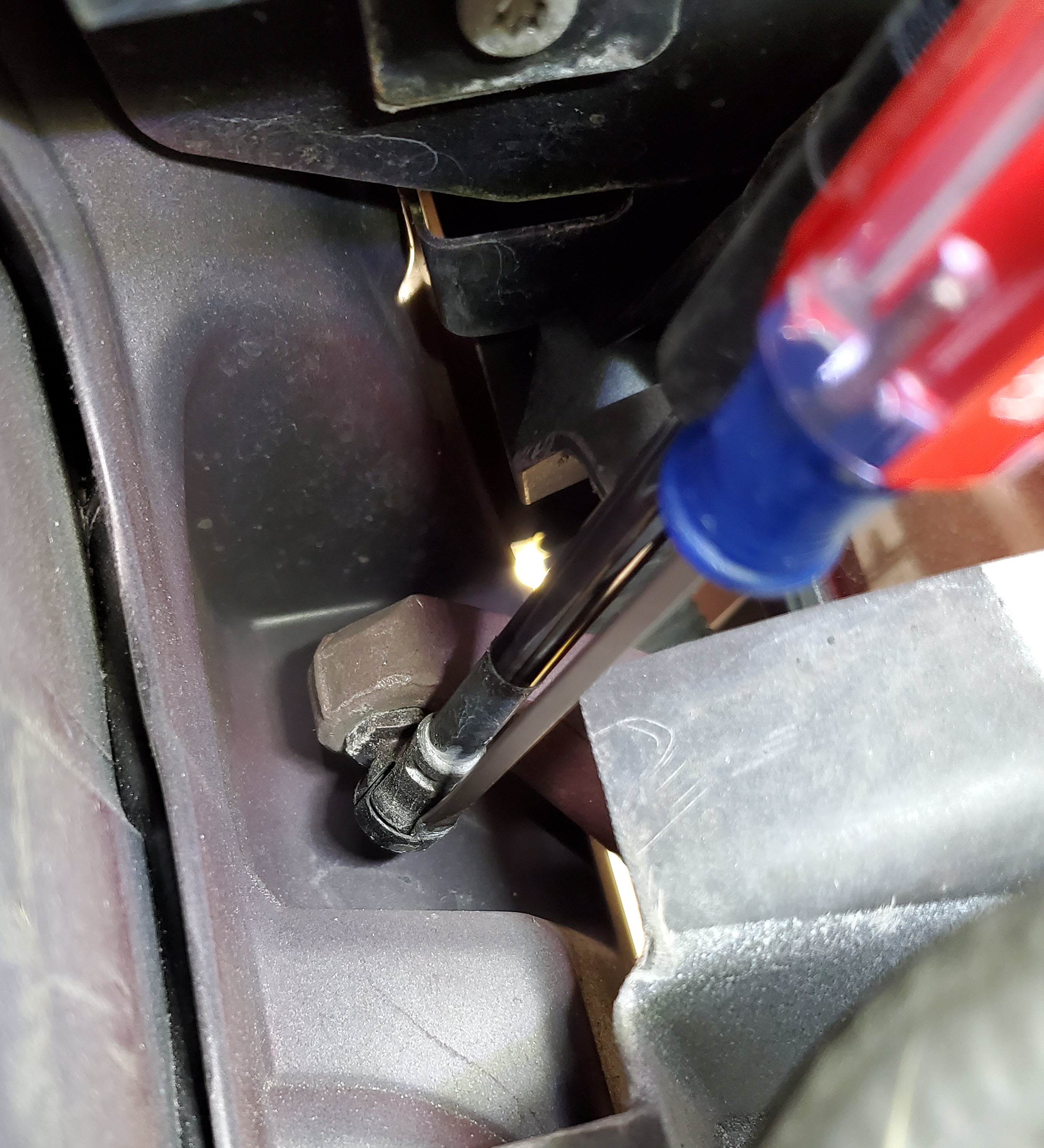 - Wiggle your flat blade screwdriver tip under the retaining clip. This is why I suggested having a long neck screwdriver, you need the extra reach of it.