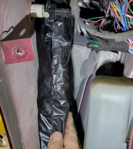• There was a piece of foam sound deadener stuffed into the cavity I needed to work in. The mounting tape was long perished, so I could just simply remove the foam or push it aside for now.