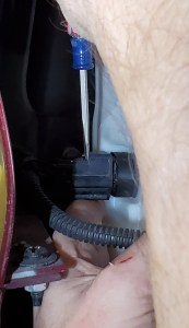 • Disconnect the electrical connector. Its the same style as the headlight washer pump connector. I used my small screwdriver to press the tabs in again. I came easily away.