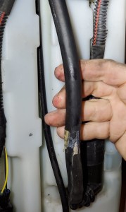 • Time to carefully refit the electrical cables and hoses into the grooves molded into the tank