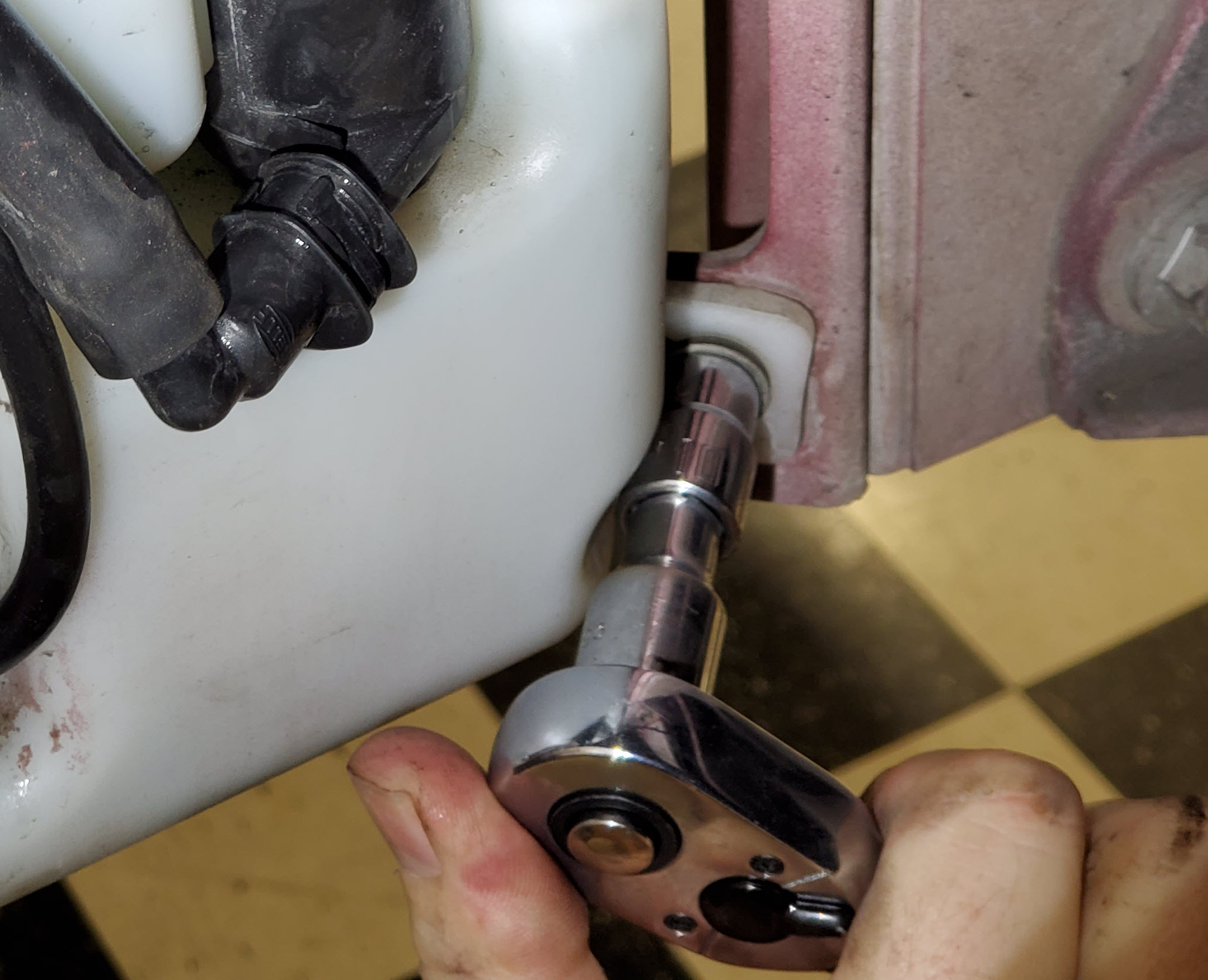 • This is where the 10mm bendy ratcheting wrench will save the day.