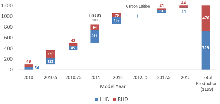Left hand drive cars achieved 729 examples and were sold in 27 markets.