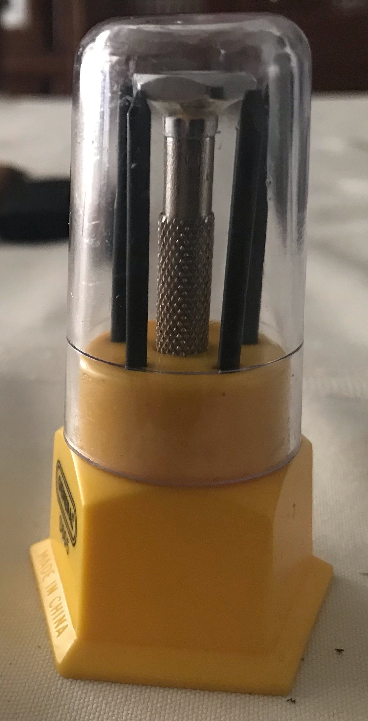 The first is a tiny flat head screwdriver you can best source from an Eyeglass screwdriver kit.   Typical shop screwdrivers are far too large.  Make sure you have a good one as you need a nice tight fit in the screw head so you don’t damage the slot.  You can probably source a kit locally, but if needed you can purchase a nice kit for about $8 USD on Amazon.