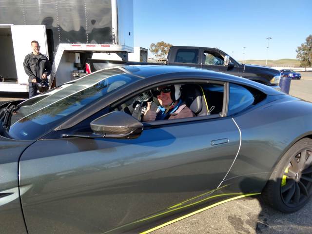 My first time on a Track in a road car. At the beautiful Thunderhill Raceway Park in Northern California in January 2014. About 30 Aston’s out for a fun day. Karen & I had fun taking turns at the wheel.